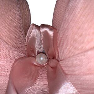 Satin ribbons and faux pearl on the bra and the panties.