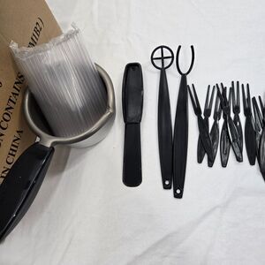 Set includes Electric pot with 2 Teflon coated removable melting pots. Includes a set of chocolae molds for various seasons and occasions, includes numbers, valentines, easter, chocolate bar, flowers, some molds for making chocolate on a stick. Sticks included in the kit, as well as drying rack. Small plastic forks for dipping fruit or treats into the chocolate. Instruction maual.