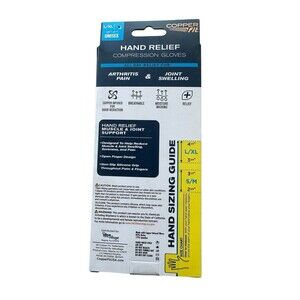 Brand new in box Copper Fit Copper infused compression gloves for hand relief. New in box. All day relief for arthritis pain and joint swelling. 1 pair as pictured. Stored in a smoke-free environment.