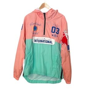 NEW Copper Rivet Denim Factory Half Zip Hooded Multicolored Windbreaker, Large