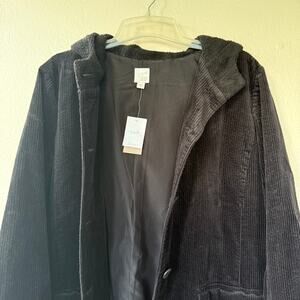 This is a brand new corduroy hooded jacket, perfect for adding a stylish and cozy layer to any outfit!