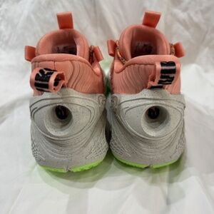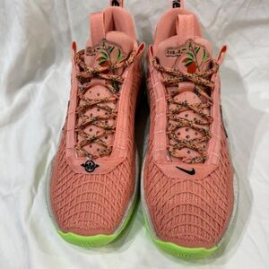 Featuring a Bright Pink lightweight upper, an eggshell Crater Foam midsole and hits of green on the outsole and tongue logos, this bold colourway reflects the beauty and strength of our world. It's built with at least 25% recycled material by weight and features a partially recycled Air Zoom strobel made to respond to your every move. This shoe is the latest effort from Nike Basketball to create more sustainable products without sacrificing performance.