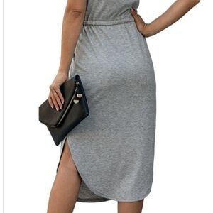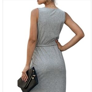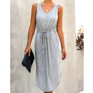 Boutique Preppy Heather Gray Tank Midi Dress Drawstring Soft Flowing