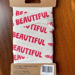 Off White cotton with pinkish / red imprint of " Life is Beautiful" with a flower design - repeating