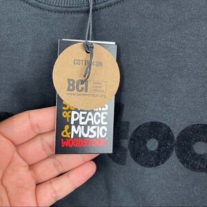 NEW Cotton On Black Woodstock Graphic Crewneck Sweatshirt Long Sleeve Womens XXS