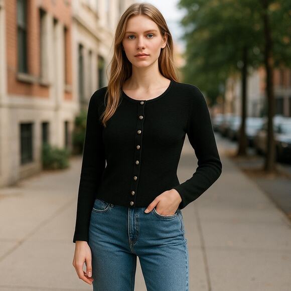 NEW without tags Country-Line Austrian Dark Gray Cardigan Sweater Decorative pewter silver buttons. Long Sleeve Size US 6 EU 42