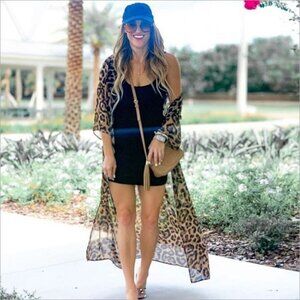 NEW Cover Up Animal Print Leopard Swim Tie Waist Kimono Duster Beach Sheer Flowy