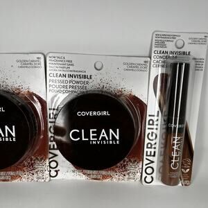 NEW Makeup Bundle- listing includes two Covergirl Clean Invisible Pressed Powder in Golden Caramel, Concealer in Golden Caramel, Brown Mascara