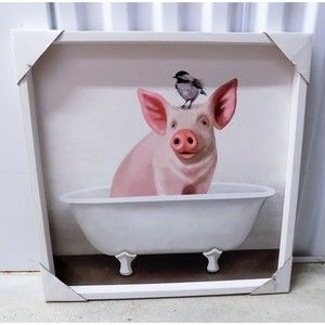 NEW COW PIG BIRD IN TUB WALL ART PRINT