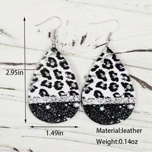 NEW Cow Print Faux Leather Black & White Drop Hook Earrings (2)