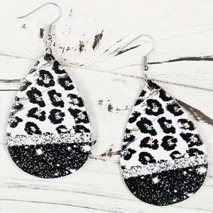 Adorable Black and White cow animal print glitter earrings. Faux Leather, lightweight glittery. Drop hook style earrings. brand NWT in original package.