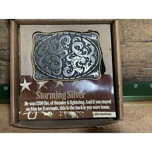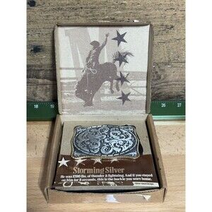 NEW- Cowboy Belt Buckle STORMING SILVER Marlboro Man Collectible Yellowstone