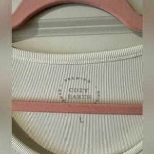NEW Cozy Earth Rib Knit Long Sleeve Lounge Top Bamboo Ivory Size Large NWOT