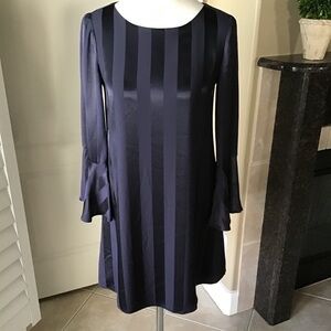 NEW Cremieux XS Navy Blue Selina Satin Striped Tulip Dress Bell Sleeves Elegant
