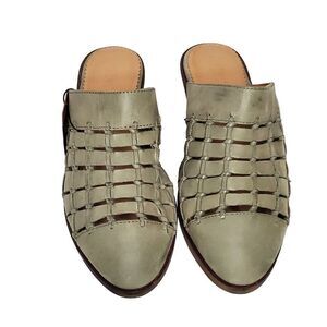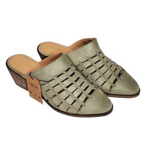NEW Crevo Lavender Woven Leather Mule 7 Sage Green Slip On 2" Heels