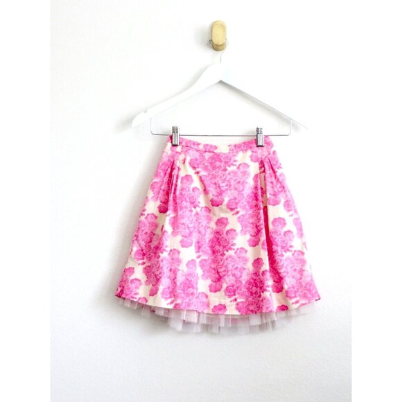 NEW! Crewcuts Pink Floral Print A-Line Skirt with Tulle Underskirt Detail SZ 8