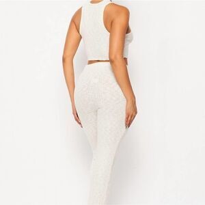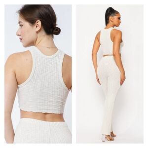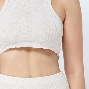 NEW Crewneck cropped tank top ribbed knit Cotton blend Oatmeal AGRADE raw hem
