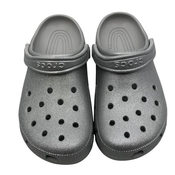 NEW Crocs Classic Glitter Clogs Unisex Mens 8US / Womens 10US Silver NWOB $55
