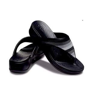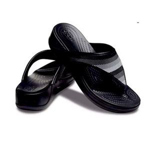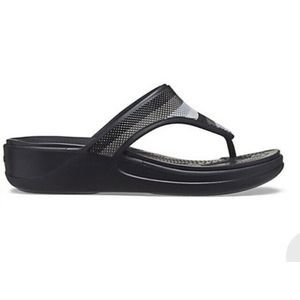 NEW Crocs Monterey Beaded Stripe Wedge Flip Black Grey Silver