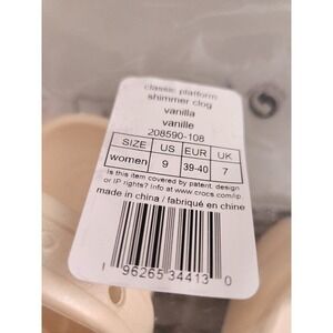 NEW Crocs Shimmer Classic Platform Clogs Size W9 With 5 Charms Vanilla, no box