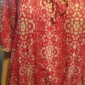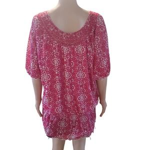 NEW Croft & Barrow 2X Blouse Pink Floral Ruched Neckline and Hem Front Tie Flowy