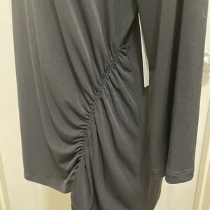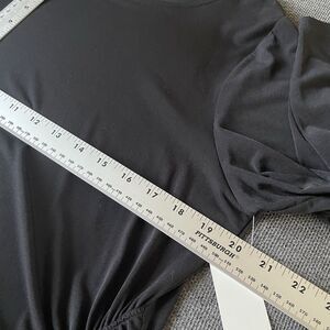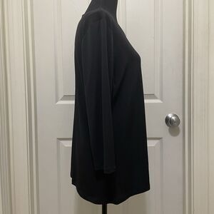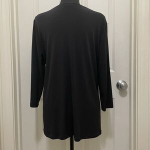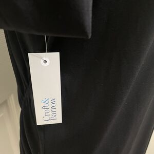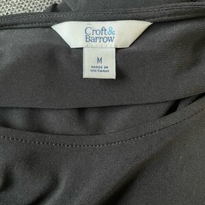 This is a new with tags Croft & Barrow Side Ruched Draped black top. It has 3/4 sleeves and is a lightweight material. It is a women's size Medium. Measurements are included in photos.