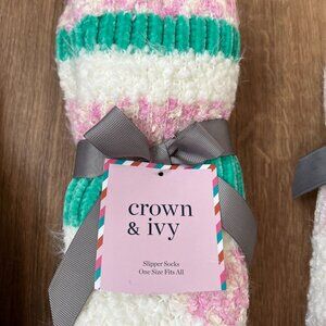 NEW Crown & Ivy Cozy Striped Sherpa Slipper Socks Bundle