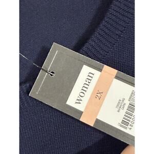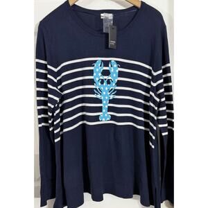 NEW Crown & Ivy Plus Cotton Navy Lobster Intarsia Nautical Top Sweater 2X Preppy