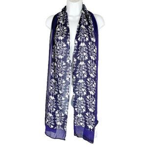 New rectangle scarf by Crown & Ivy. It's navy blue and white floral with a solid navy and black border. Soft as a cloud viscose fabric. Semi sheer. New, with tag! About 74" long by 15" wide