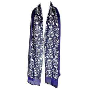 NEW Crown Ivy Scarf Rectangle Navy Blue White Floral Solid Border Gift NWT