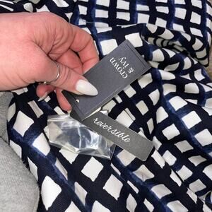 NEW Crown & Ivy Women's Long Sleeve Reversible Rain Coat Navy/White Size SM