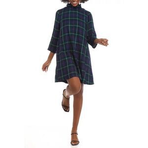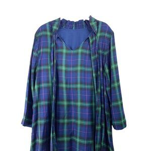 NEW Crown & Ivy Bow Back plaid Ruffle Dress Sz L green navy blue