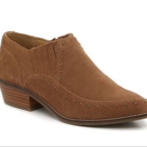Micro studs outline the Kavita ankle boots from Crown Vintage. Stretchy hidden gores enhance the fit and a low, walkable heels makes stepping easy in this western pair! Leather or suede upper Pull-on with hidden elastic gores Pointed toe Faux leather lining 11⁄2" stacked block heel Synthetic sole Imported