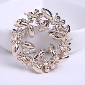 NEW Crystal Brooch Olive Branch Wreath Shape Colorful Rhinestone Costume Jewelry
