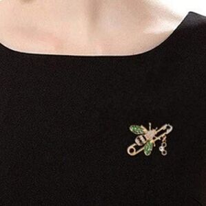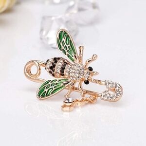 NEW Crystal Bumble Bee Safety Pin Lapel Brooch Gold Tone Rhinstones Enamel Cute