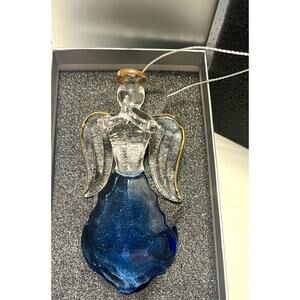 NEW Crystal Glass ANGEL ORNAMENT Chandelier Clear & Blue Prism Praying Figurine - New Condition In Original Box!
