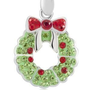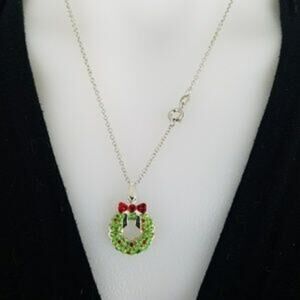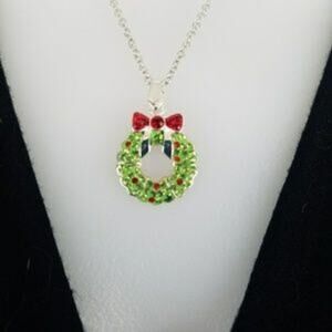 NEW Crystal Wreath White Gold Plated Christmas Holiday Green Red Necklace