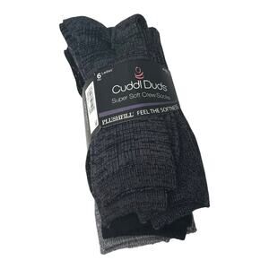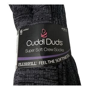 NEW Cuddl Duds Women's Plushfill Super Soft Crew SOCKS 6 Pair Black Gray 4-10 NIP - NEW In Package!
