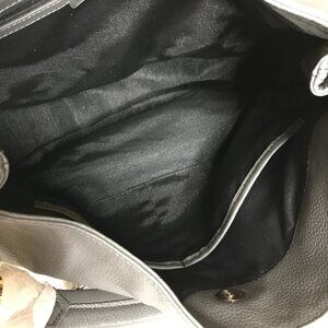 New with tags! Beautiful quality pebbled leather. Gold tone chain details at handles. The true color of this fabulous bag is a lovely sage green. Front zip pocket. Inside one zip pocket & two open pockets. Magnetic snap top closure. See photos for details