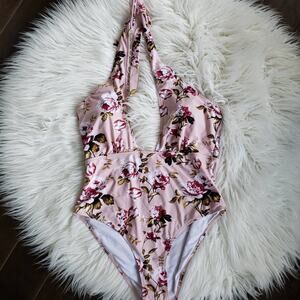 NEW CupShe Pink Floral Halter One Piece Plunging Pink XXL