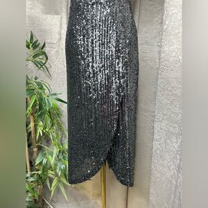 NEW Cupcakes & Cashmere Joelle Wrap Party Sequins Midi Dress Black Sz S