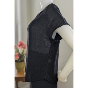 NEW Cupio Short Sleeve Sweater Black See Through Open & Loose Knit Size XL