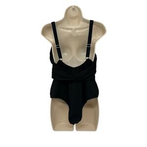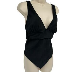 NEW Cupshe Black Ginger Ribbed & Ruched One-Piece Swimsuit Sz XL