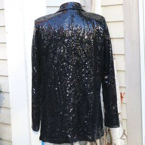 NEW Cupshe Black Starlight Sequin Collared Open Stretch Knit Jacket Sz MEDIUM