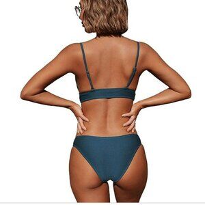 • Classic 2 Piece Triangle Bikini Style, Ribbed Materials, 2 Adjustable Straps, Removable Bra Cups