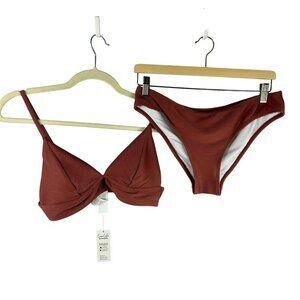 NEW Cupshe Ribbed Triangle 2 Piece Bikini Women Medium Brown Solid Vacation
