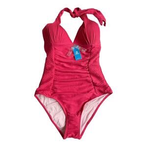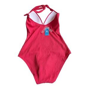 NEW Cupshe SWIM SUIT Womens Ribbed Halterneck Long Torso Tummy Control One Piece