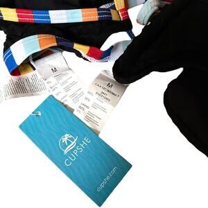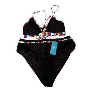 NEW Cupshe SWIMSUIT Women's MED Black Waffle Knit Bikini Bralette & Bottoms Set - NEW With Tags!