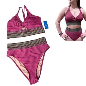 NEW Cupshe SWIMSUIT Women's MED Magenta Twist Peek Bikini Top High Waist Bottom - NEW With Tags!