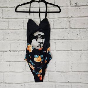 NEW Cupshe Women's Multi Color Twist Top High Waist Cut Out 1Pc Swimsuit XS